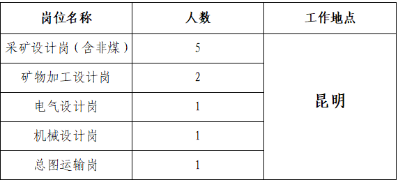 中煤科工集团北京华宇工程有限公司采矿设计岗等招聘公告发表时间:2025-08-11 06:51来源:中煤科工集团北京华宇工程有限公司 招聘公告 中煤科工集团北京华宇工程有限公司(简称北京华宇)隶属于国务院国资委直接管理的中央企业——中国煤炭科工集团有限公司,是煤炭勘察设计领域中底蕴深厚、技术专业、服务优质、业务范围广、市场占有率高、行业影响力大的金牌“老字号”企业。北京华宇本部位于北京,所属机构分布于北京、天津、平顶山、西安、昆明等地。业务范围涵盖勘察设计(含监理咨询)、工程总承包(含运营)、洗选装备等三大板块。 北京华宇拥有一支高素质的人才队伍, 先后培养全国工程勘察设计大师5人,享受国务院政府特殊津贴专家5人,煤炭行业勘察设计大师8人,煤炭行业建筑工程监理大师1人,目前公司在岗职工1000余人,拥有高级专业技术职称440余人,注册执业人员330余人。 北京华宇秉承七十多年的优良传统,用现代企业制度的管理方式及先进的工程勘察设计全方位服务理念,脚踏实地、创新超越,得到了国家、社会和行业的一致肯定;先后获得“全国先进工程勘察设计企业”“中央企业先进集体”“全国煤炭工业科技创新示范单位”“全国建设项目环境影响评价优秀甲级单位”“煤炭行业先进监理单位”等多项荣誉称号。 为开发西南市场,北京华宇所属西南分公司现面向社会招聘部分岗位。现将有关事项公告如下: 01招聘岗位